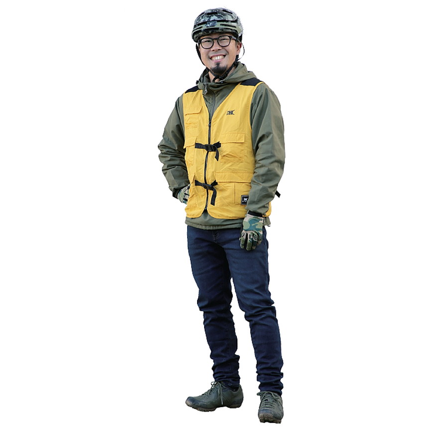自転車で、ゆるいけど濃い時間を過ごす……。まさにこの企画にピッタリということで、山本さんにいつものアウトドアスタイルで走ってもらった!