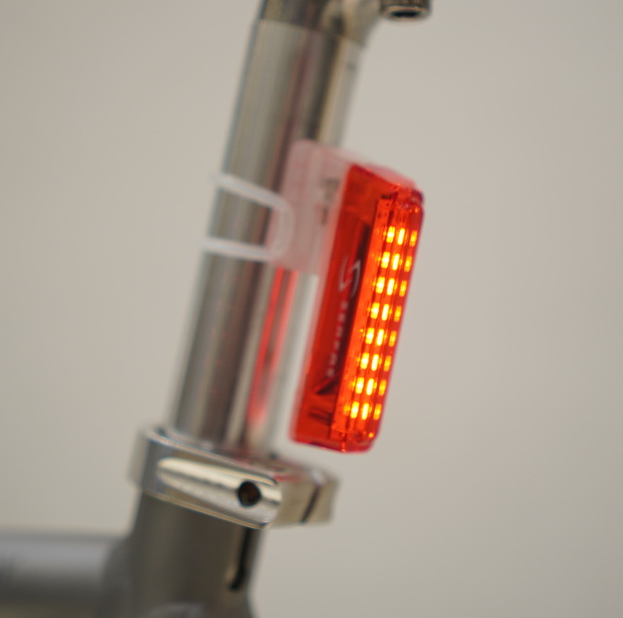 このコンパクトなLEDライトは、29gの軽量設計でありながら、広い視野角と最大視認距離1000mの高い視認性を誇ります。背面にクリップが付いているので、乗車時以外もランニングなどさまざまな用途に対応できます。