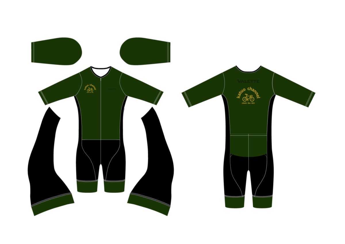 去年のMt.富士ヒルクライムでカツオさんが着用していた業界最軽量のプレミアムライトワンピースやセパレートタイプのプレミアムライトジャージをカラーもデザインも豊富にして受注販売致します!
