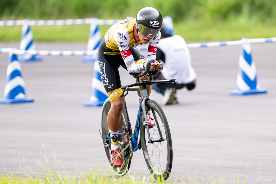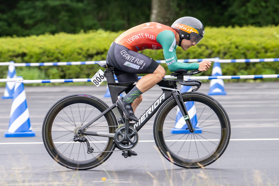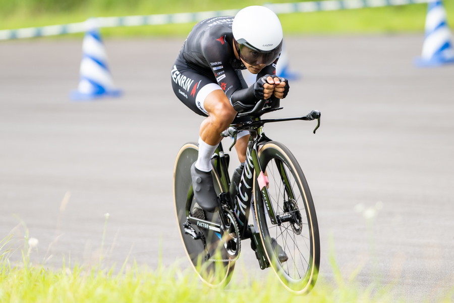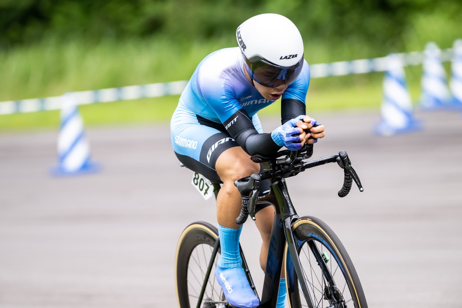 個人タイムトライアルではあるものの、ノーマルバイクでの出走を選択した寺田は、「ロードバイクにDHバーをつけ、ディープホイールで走りました。結果的にはこの形が自分には合っていました、下りで攻めるよりも上りでタレないことが大事だと思っていたので。フロントは55T、リアは30Tを選択しました。スタート前は重たいかなとも思っていましたが、一度もインナーに落とすことなくいけたので、踏み切れたのでよかったかな、ギヤ比選択もばっちりだったかなと思います」と自身の機材選択が見事に的中したと語ってくれた。