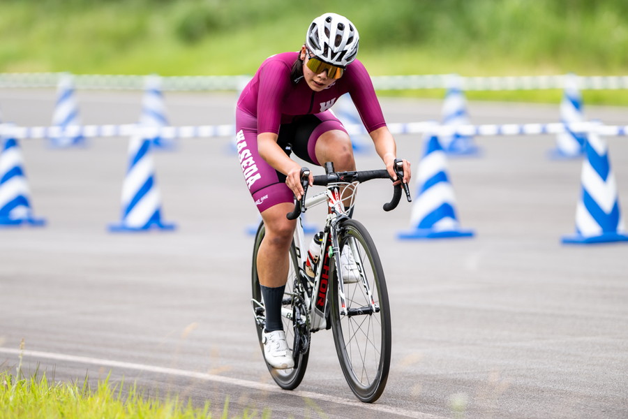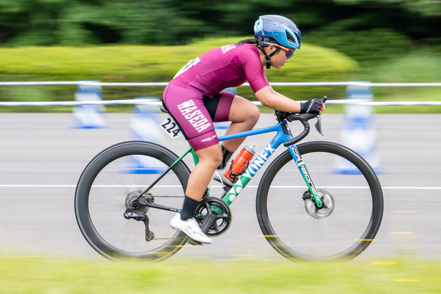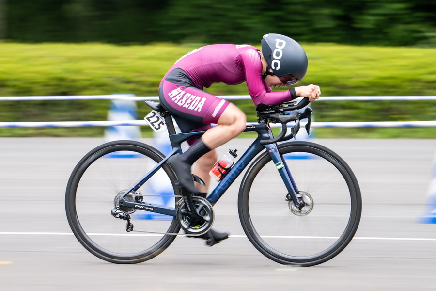 寺田同様、ノーマルバイクでの出走を選択した石田だが、「機材に関しては、2カ月前から普段のロードポジションにDHバーをつけるだけと決めていました。6月頭に学生TTがあるはずだったのでタイムトライアル用バイクも準備はしてましたが、CSCのコースではロードバイクの方が良いかなと考えて、DHバーのみつける形も準備をしていました。ギヤもフロント52-36、リアは11-30で、普段のロードと全く同じです」と準備段階から決めていた形だったと教えてくれた。