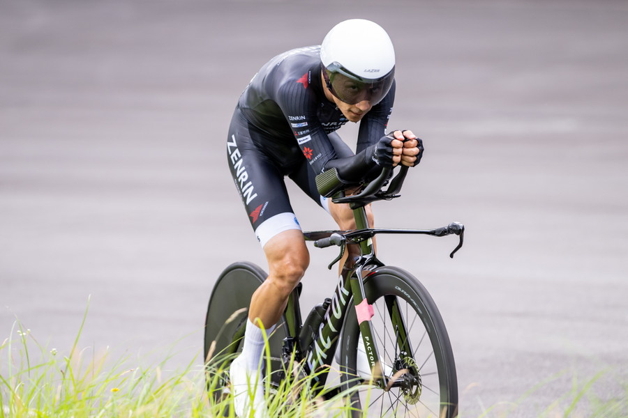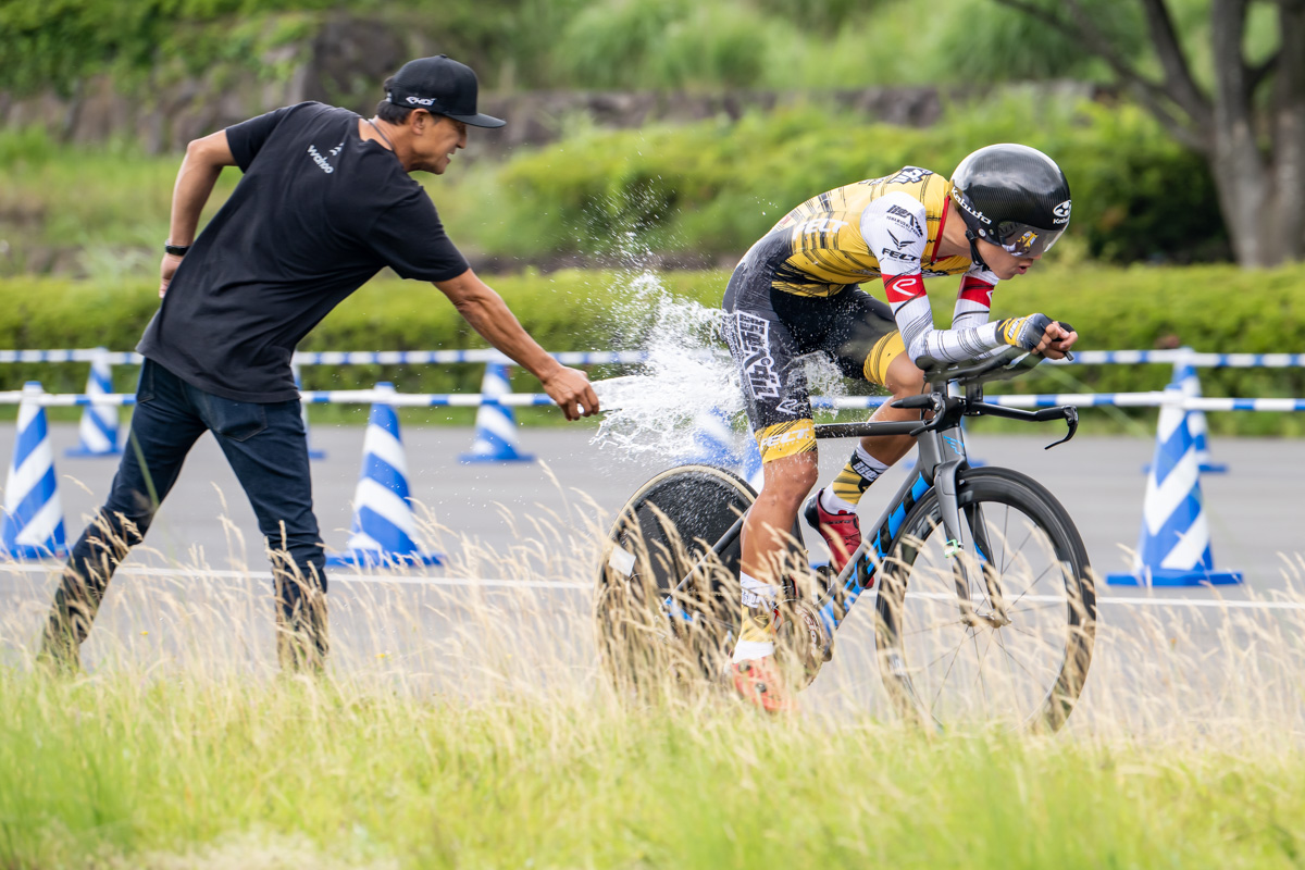 個人タイムトライアルではあるものの、ノーマルバイクでの出走を選択した寺田は、「ロードバイクにDHバーをつけ、ディープホイールで走りました。結果的にはこの形が自分には合っていました、下りで攻めるよりも上りでタレないことが大事だと思っていたので。フロントは55T、リアは30Tを選択しました。スタート前は重たいかなとも思っていましたが、一度もインナーに落とすことなくいけたので、踏み切れたのでよかったかな、ギヤ比選択もばっちりだったかなと思います」と自身の機材選択が見事に的中したと語ってくれた。