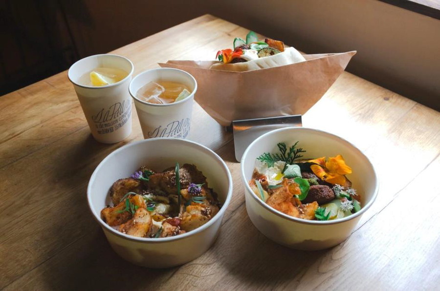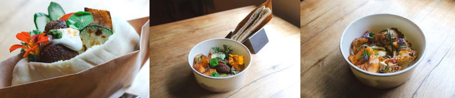 まず注目なのは、東京の代々木上原で行列が絶えない人気店「La Pita de Maison Cinquantecinq(ラ・ピタ・ドゥ・メゾンサンカントサンク)」。オーナーシェフ丸山智博氏の監修による、富士北麓の野菜やハーブを詰め込んだ「ファラフェルピタサンド(pita de bois)」。「La Pita de Maison Cinquantecinql」のピタを、本店以外で食べられる初の店舗となります。