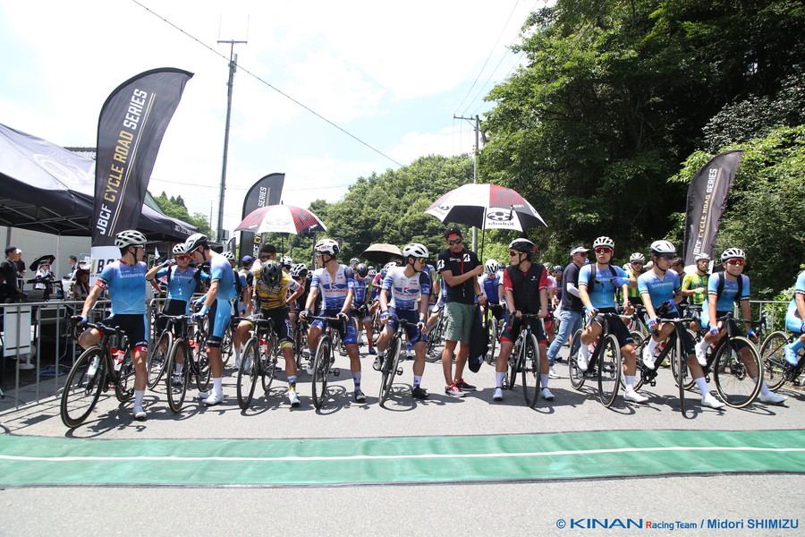 KINAN Racing Teamからは、昨日の石川クリテリウムで表彰台に乗った孫崎大樹、津田が引き続きエントリー。そしてトマ、新城、山本元喜、花田聖誠、宮崎泰史、畑中勇介と、エントリー可能な最大人数の8名が出走した。
