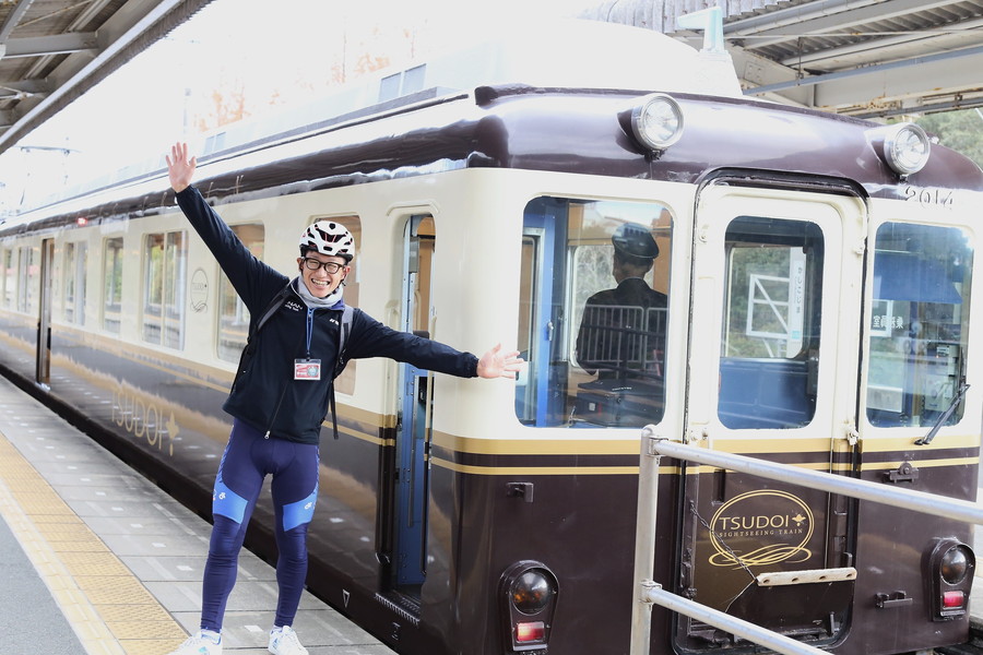 観光列車「つどい」サイクルトレイン-KettA-の今秋最終運行日となる10月14日(土)に、元プロロードレーサーで「近鉄電車サイクルトレインアンバサダー」の中島康晴さんが乗車します! 往路の車内では、ミニトークショーなどのイベントも実施予定です! 皆さま、お誘いあわせのうえ、ぜひご乗車いただき、伊勢志摩でのサイクリングをお楽しみください!