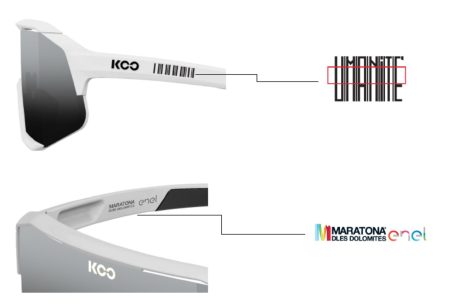 2023年はアイウェアのKOOが限定モデルを発表。人気のDEMOSをベースとした、その名もDEMOS MARATONA DLES DOLOMITES(デモスマラトーナ デレ ドロミテ)です。第36回ドロミテマラソンのテーマは人間性。この数年間、パンデミックが人々の心や、人とのつながりに変化をもたらしました。そして世界が再起動された今だからこそ「人間とは何か」を冷静に見つめることをテーマとしたわけです。そのアイコンがバーコードを模したデザインのUMANITE。語意は人類や人間性を指すフランス語であり、これも大会ロゴとしてデザインされています。