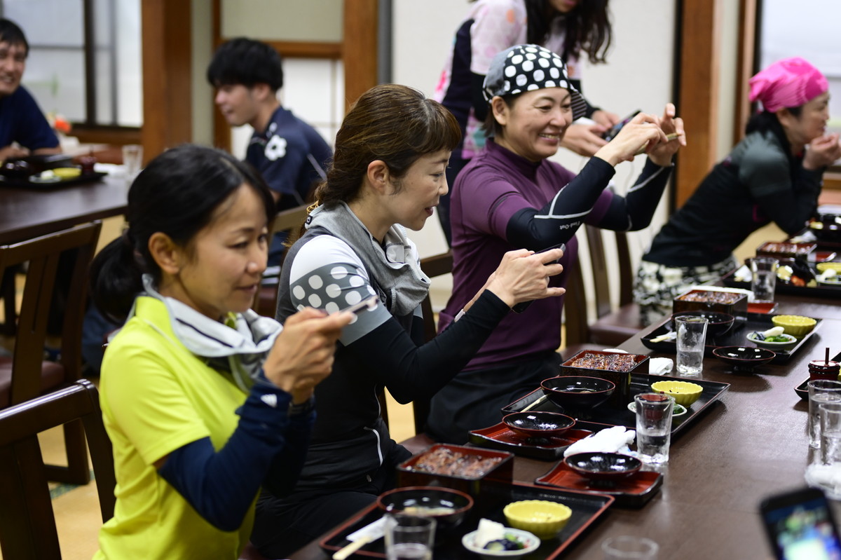 昼食はうなぎで有名な「お食事処 旅館 喜久」。ボリュームたっぷりのうな重と、わかさぎフライ定食を選んでオーダー。食事を待っているあいだも食べているときも、笑い声が絶えない今回のツアー。「どっから来たんですか?」「甲府です」「ええーっ! そんなに遠くから!? すごーい」「あなたはどちらから?」「町田です」「あら近いじゃない! また仲間が増えた(笑)」など参加者どうしの交流がどんどん進むというか暴走する店内。