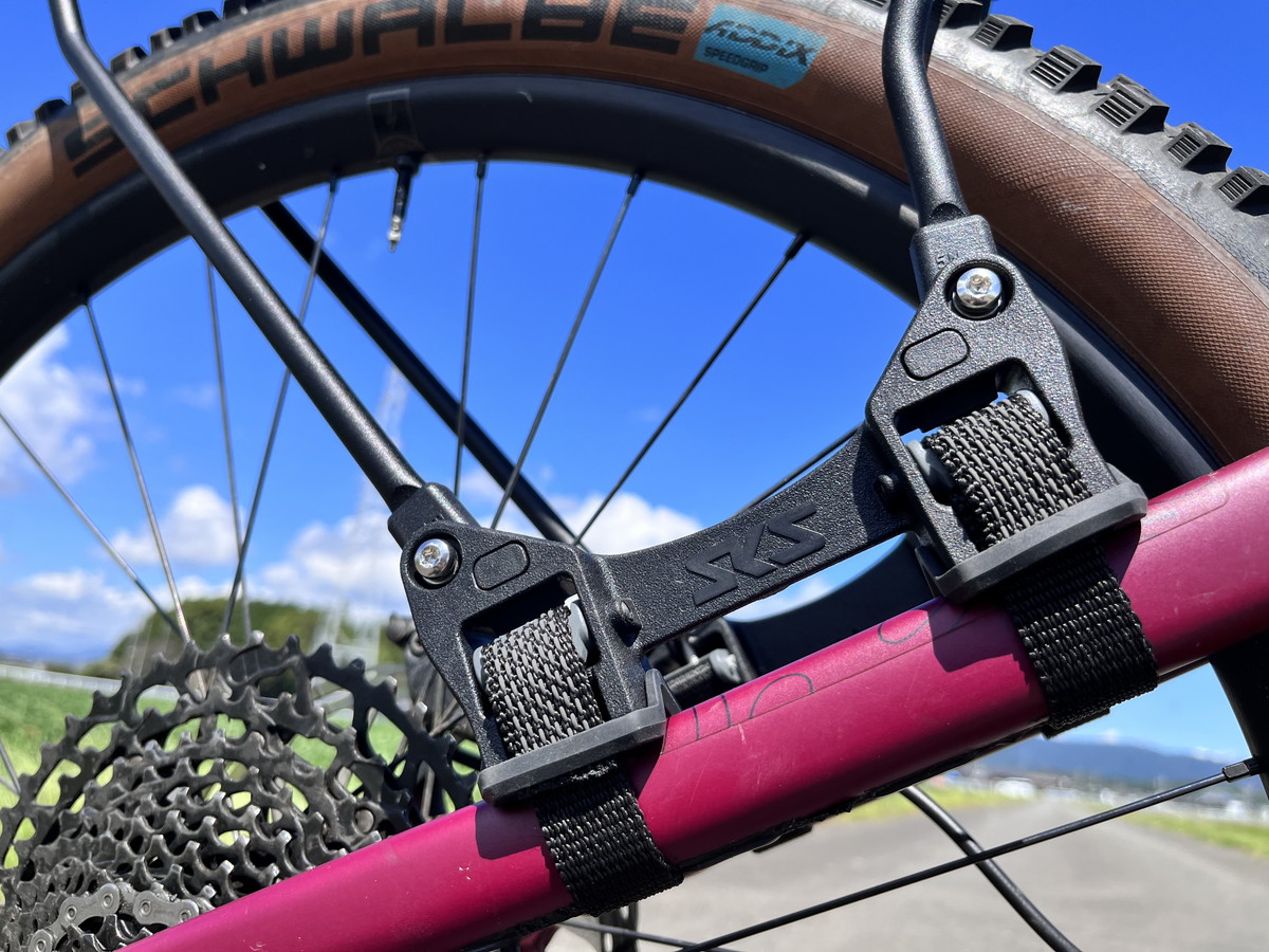 ・耐久性のあるナイロン製ストラップをシートステーにしっかり固定し、細かく調整が可能 (カーボンフレームには適しません)
