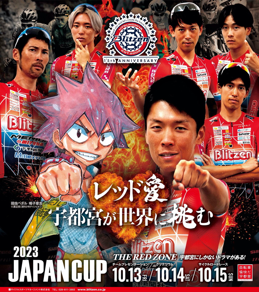 宇都宮市内で繰り広げられるアジア最⾼峰の⾃転⾞ロードレース⼤会「2023ジャパンカップサイクルロードレース」(10⽉13⽇〜15⽇)開催にあわせて、宇都宮ブリッツェンのオフィシャルポップアップストア「THE RED ZONE 2023」が、JAPAN CUP MUSEUMと合同で9⽉30⽇(⼟)にオープンする。さまざまな展示やグッズ販売も楽しめるので、ぜひ足を運んでみよう。以下、プレスリリースより。