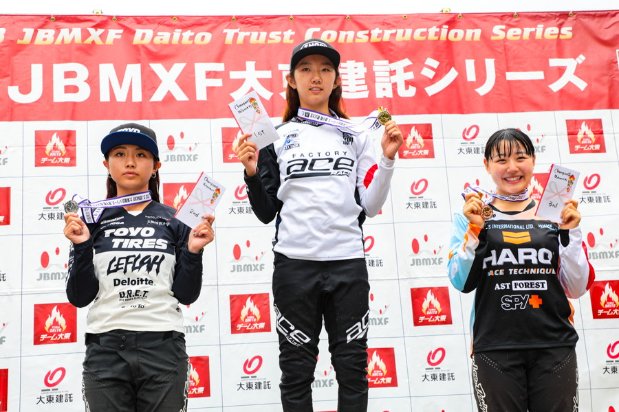 8月にスコットランドのグラスゴーで開催されたUCI BMXワールドチャレンジのガールズ 9才クラスで優勝した小泉千紗(岡山県BMX協会)がW1ゼッケンで初のJBMXF 大東建託シリーズに出場した。予選、決勝とも後続に2秒以上の大差を付け貫禄を見せつけた。