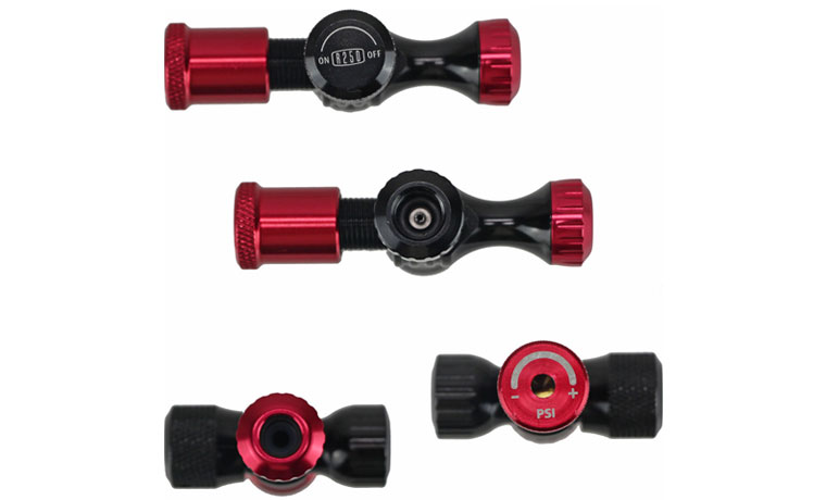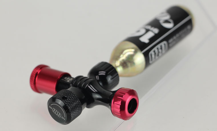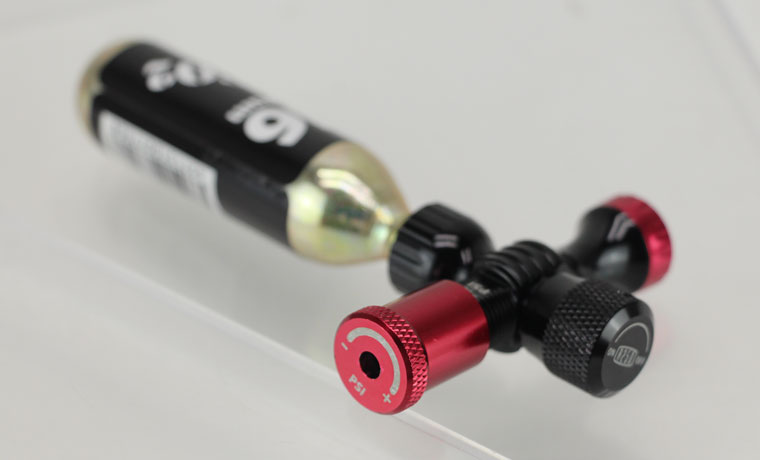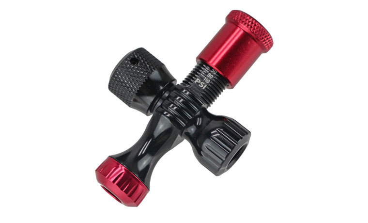充填する空気圧を事前に設定。プリセット型CO2インフレーター ブラック/レッド 空気圧計付 仏式|R250