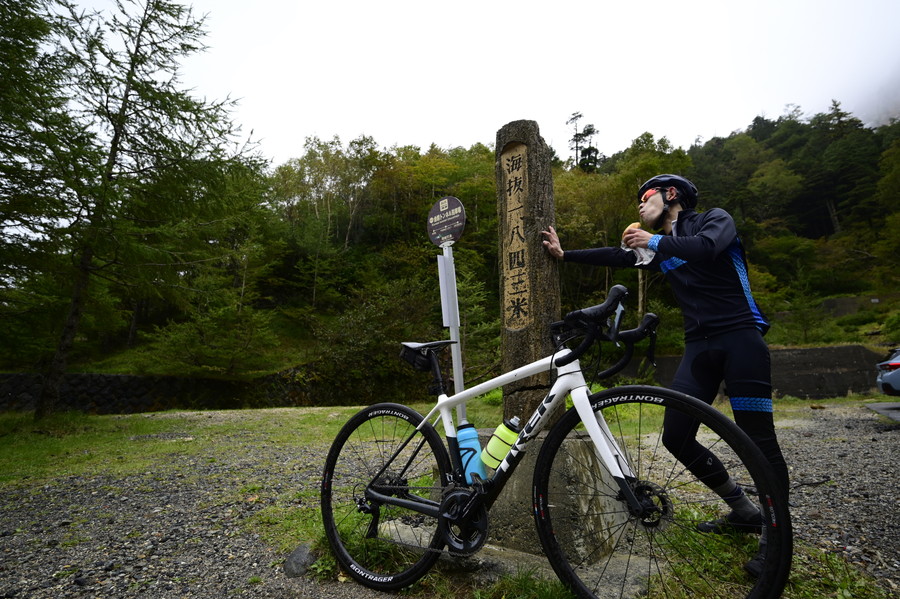 前回は折り返し地点だった標高1,382mの丸沼高原だが、今回はさらに461m上り、コース最高地点の金精峠までペダルを回す