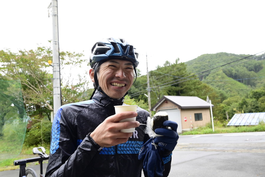 片品村内のエイドステーションでは道の駅 川場田園プラザの超人気店・かわばんちのおにぎりと東京電力パワーグリッドのサポートによるホットドリンクが提供された