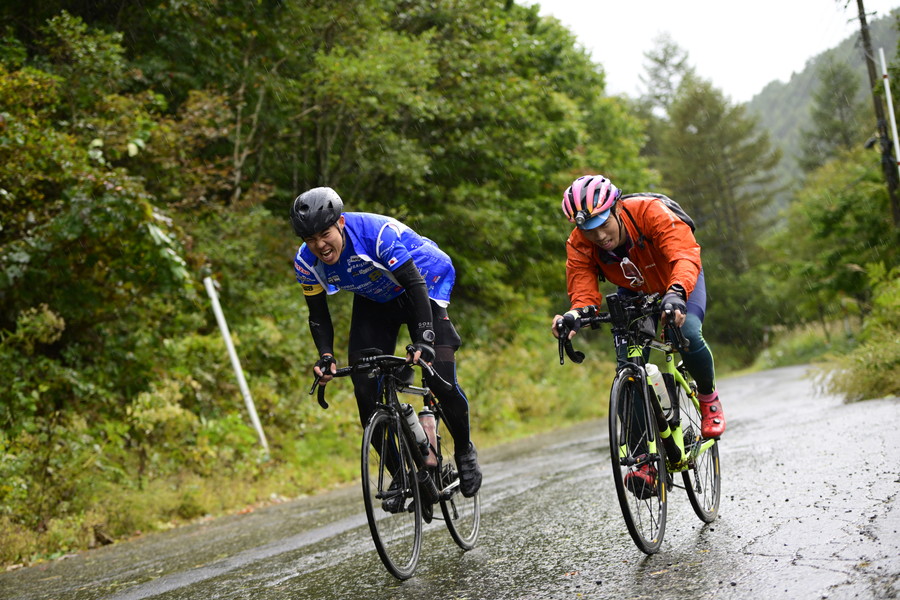 雨風吹き荒ぶるなか、川場スキー場までの最後の上りを駆け抜ける