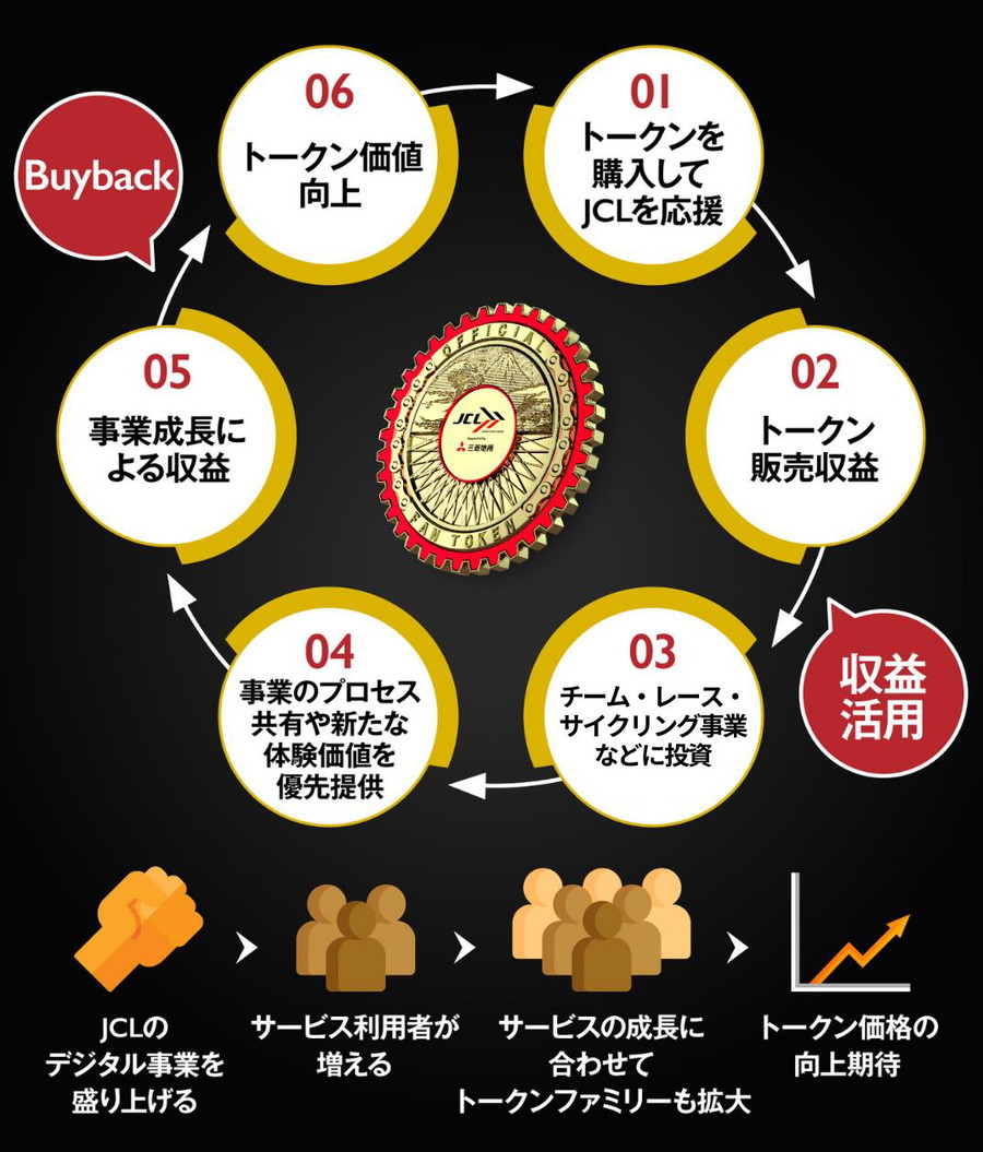 今回のデジタル事業とトークンの連携により、サービス利用者の増加に合わせてトークン価値が継続的に上がっていく仕組みが構築され、サービスユーザーの方々までトークンコミュニティーを拡大させることで、共にJCLを成長させ、新しい価値を創造することが可能になります。また、サービスが成長し事業収益が発生した場合は、Buyback(自社トークン買い)を実施し、トークン価値向上を狙っていく計画も検討中です。