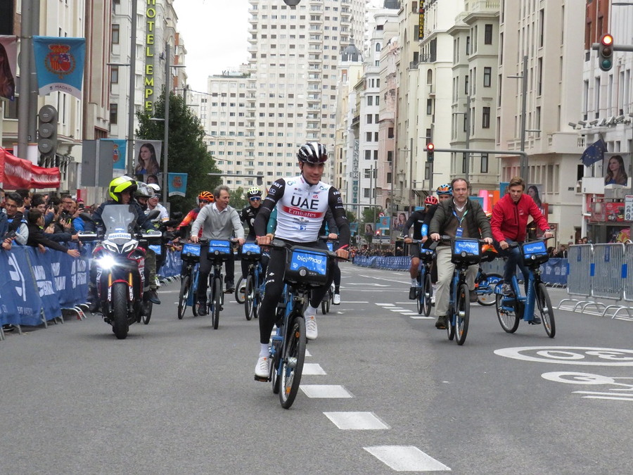 その後、マドリードが導入している公共自転車システムで使用する電動自転車で、選手全員がコースを1周した。ちなみに、この自転車の乗り心地については、プロの選手から「乗り心地もよいし、街中では相当頼りになる自転車だと思う。女性や子どもでも、この自転車があれば、マドリード市内の坂とか簡単に上れるんじゃないかな」という声もあったほど、好評だった。