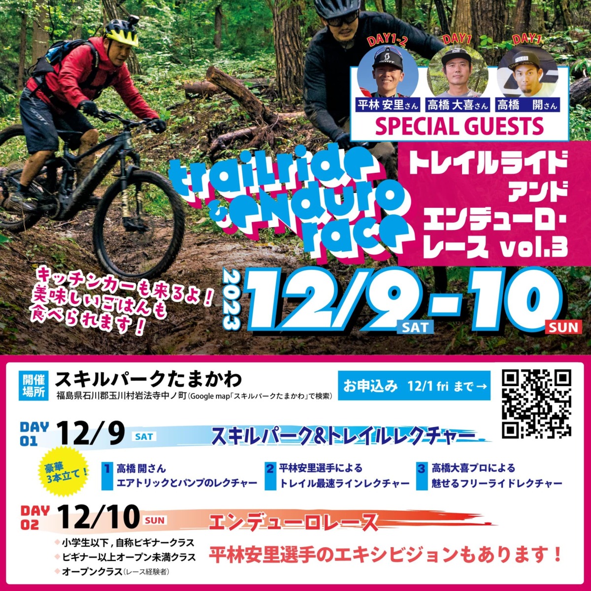 12月9、10日に福島県玉川村Cycle Village TAMAKAWAでTRAIL RIDE and ENDURO RACE VOL.3開催!