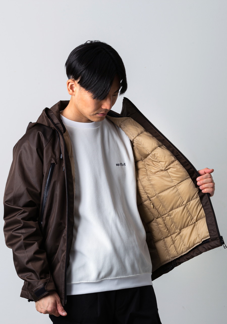 narifuri(ナリフリ)から新製品が登場。冬を代表するアウターとして、改良を重ねてきた2レイヤーマウンテンパーカーに、保温力を追加できるようアップデートしたニューモデルが加わった。以下、プレスリリースより。
