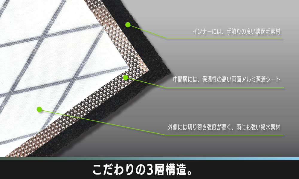 - 中間層には、保温性の高い両面アルミ蒸着シート