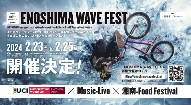 小田急電鉄株式会社はENOSHIMA WAVE FEST実行委員会を立ち上げ、2024年2月23日(金・祝)から25日(日)まで、小田急沿線が世界に誇る観光地・江の島エリアで、日本では5年ぶりとなる自転車競技BMXの国際大会「UCI BMX FREESTYLE WORLD CUP ENOSHIMA JAPAN」(以下、BMX大会)を中心とした複合イベント「FUJITA Presents ENOSHIMA WAVE FEST」(以下、EWF)を開催します。