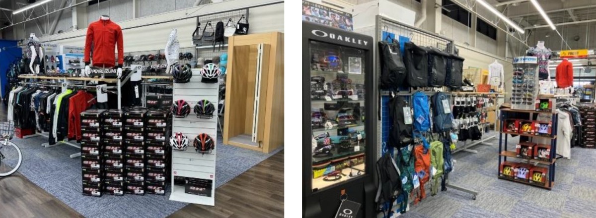 取り扱いブランドも10月以降に3社増え、TREKやCANNONDALEをはじめとする総合ブランドからピナレロやビアンキといったヨーロッパハイブランドを展開。また、北海道内では珍しいアパレルコーナーが新設された。売場はパールイズミを中心とした品ぞろえで、常に季節を意識したウェア類をディスプレーし、オールシーズン楽しめること間違いないだろう。