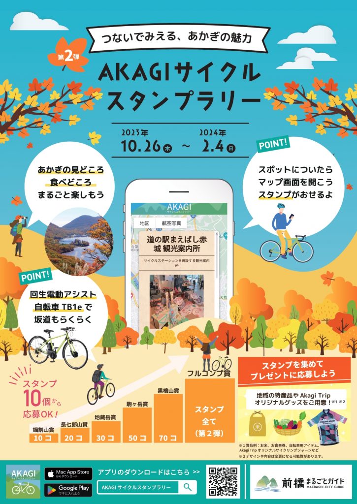 公益財団法人前橋観光コンベンション協会(群馬県前橋市)が現在開催中の「AKAGIサイクルスタンプラリー 第2弾」に前橋、渋川、みどり、桐生といった赤城山エリアのコースが追加され、現在全9コースが公開されている。開催期間は令和6年2月4日まで。以下、プレスリリースより。