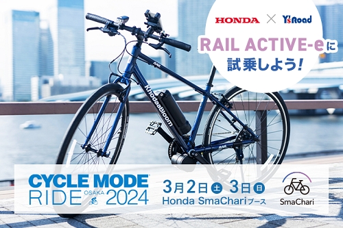 株式会社ワイ・インターナショナルでは、3月2日(土)、3日(日)に開催される「CYCLE MODE RIDE OSAKA 2024」(会場:万博記念公園)で、Hondaとのパートナーシップで生まれた最先端のeバイク「RAIL ACTIVE-e」の試乗会をHonda SmaChari®ブースで実施いたします。