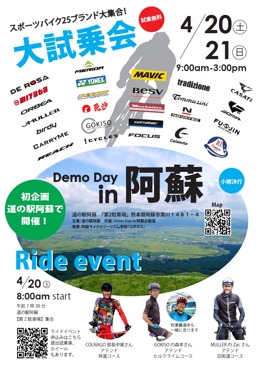 ライドイベントも実施! 25ブランドが集結する試乗会「Demo day in 阿蘇」4月20日、21日に開催