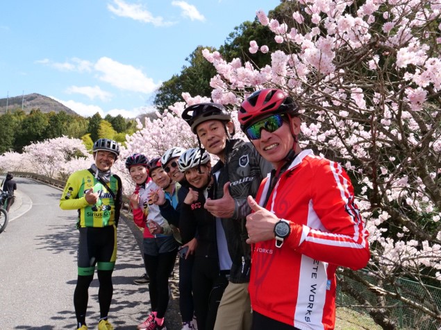 第2回目の開催となった今回のテーマは、秦野の春を五感で満喫。秦野市内の桜の名所や里山を抜け、絶景ポイントを目指すというもの。8時30分、道案内人の宮澤崇史さんとサポートライダーが引率する3グループに分かれてスタート。各グループにベルマーレの選手がサポートについてくれるので安心してライドを楽しめる。