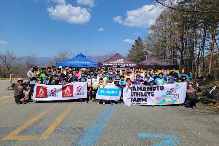 ダートクリテリウムは小学生からプロ選手までが参加する、クロスカントリーベースのショートレースです。スピード感あふれる短いレースをクラスに分かれて複数ヒート行い、各自の力量に合わせて誰でも競り合う楽しさと自然にレベルアップできるように盛り込んだゲーム性を持たせたレースだ。プロMTBライダーの松本 駿さんが監修し、TEAM GRMによって運営される。