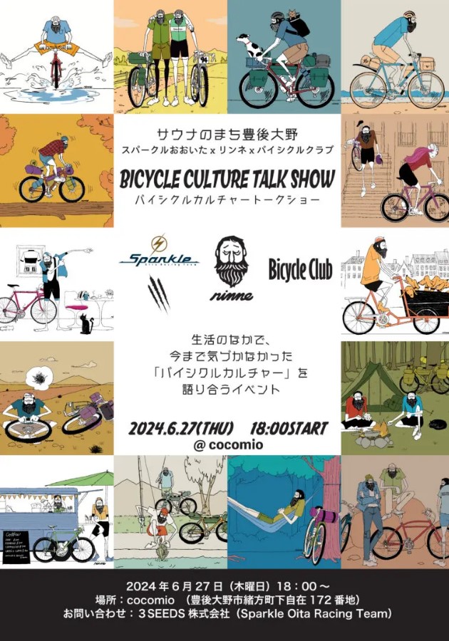 2024年6月27日、Sparkle Oita Racing Team × rinne × Bicycle Clubのコラボイベントを豊後大野市の関係人口交流拠点施設cocomioで開催する。このイベントは生活の中で今まで気づかなかった「バイシクルカルチャー」を語りあうトークショーとなっている。ゲストは以下2名だ。