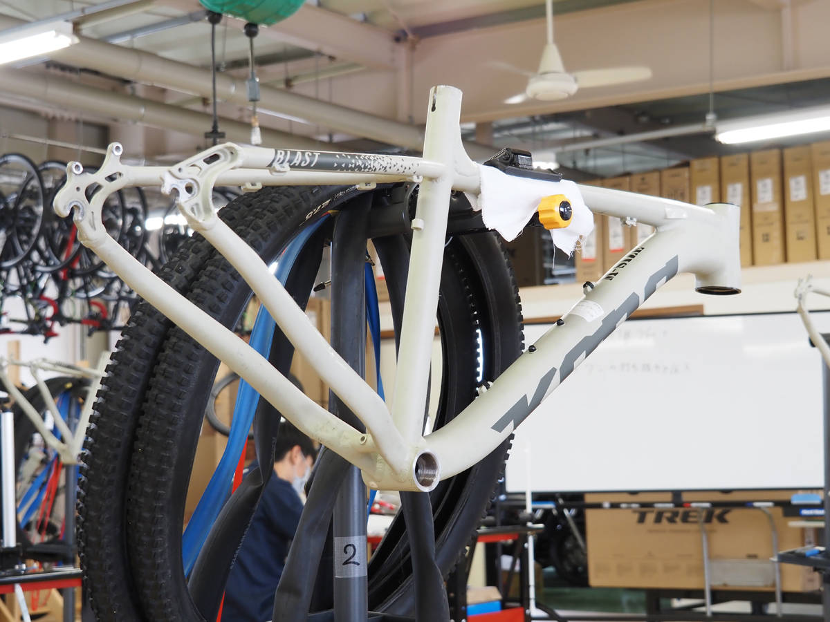 MTB(マウンテンバイク)の整備実習も同様に、七分組から始まり、オーバーホールまでの一連の作業を学ぶ。特にMTBならではの技術として、サスペンションフォークの分解組立やフロントサスペンションの調整、各部の切削作業などが含まれる。