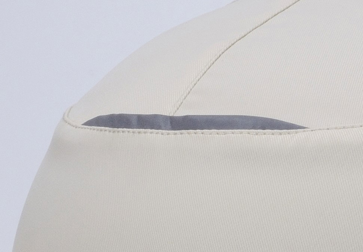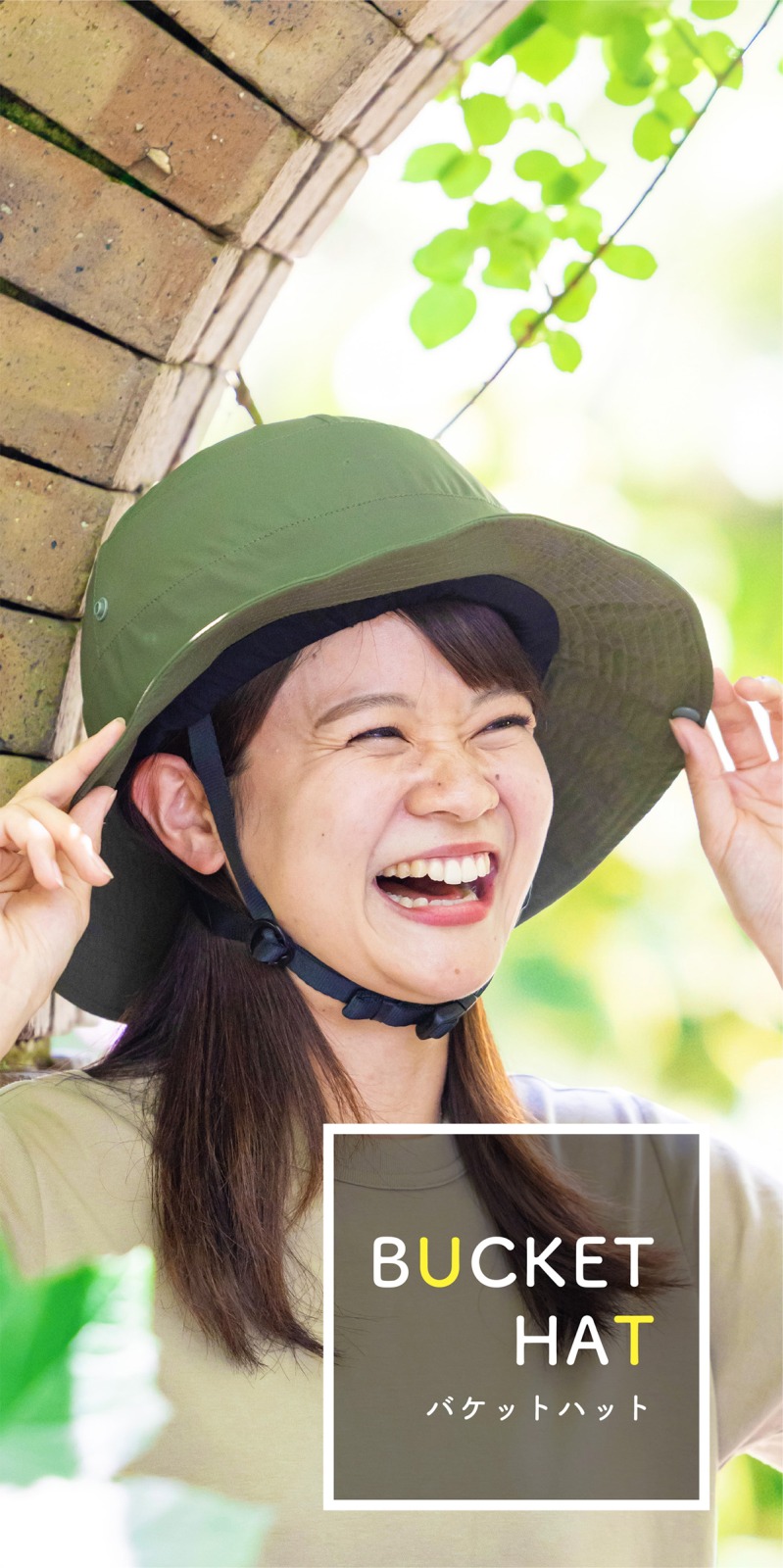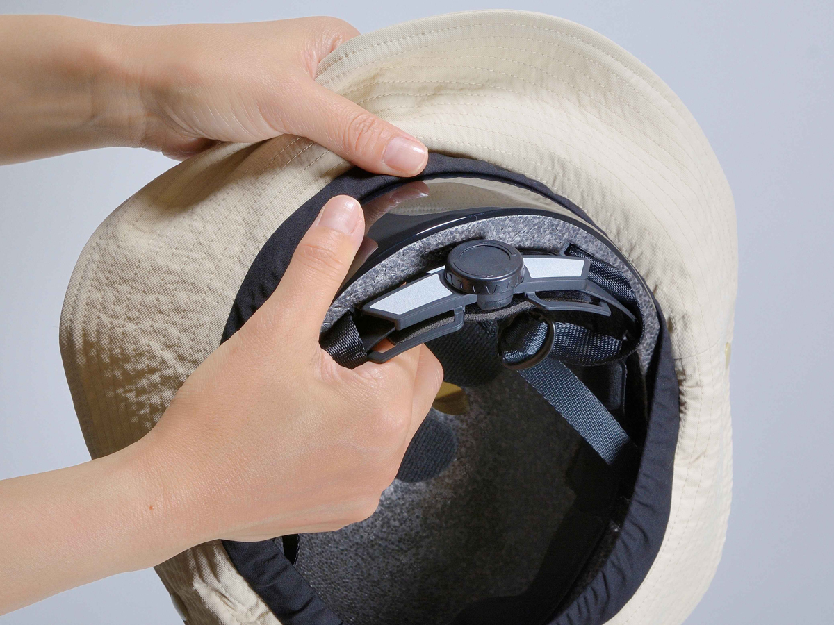 国内帽子メーカーと共同開発した帽子カバーは、デザインや風合いにこだわり、広いツバやヒサシを持ちながらも、自転車用ヘルメット(SGマーク基準)としての視界を確保する工夫が施されている。紫外線保護指数UPF50+(UVカット率95%以上)の生地を使用し、夜間の安全性を高める反射リフレクターも装備している。