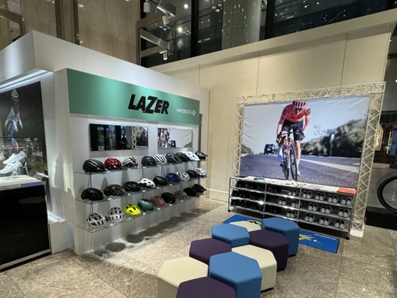 シマノが取り扱うヘルメットブランド「LAZER(レイザー)」もポップアップに並ぶ。同ブランドは1919年に⾃転⾞が国技ともいわれているベルギーのフランドル地⽅で創業、100年を超える歴史を持つ。フランドル地⽅は⾃転⾞レースが盛んに⾏われており、「LAZER(レイザー)」も⾃転⾞レースシーンの最前線に⽴ち、イノベーション、デザイン、安全および技術分野で業界をリードしてきた。