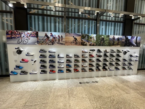 同社はプロレースからシティライド、オフロードでのサイクリングに⾄るまで、あらゆるライディングシーンに応えるべく、⾃転⾞⽤部品だけでなくシューズやアイウェア、ヘルメットといったサイクリングギアをラインアップ。今回のPOP-UPでは、現在販売中のシューズ・アイウェア・ヘルメットの全ラインアップを展⽰予定だ。