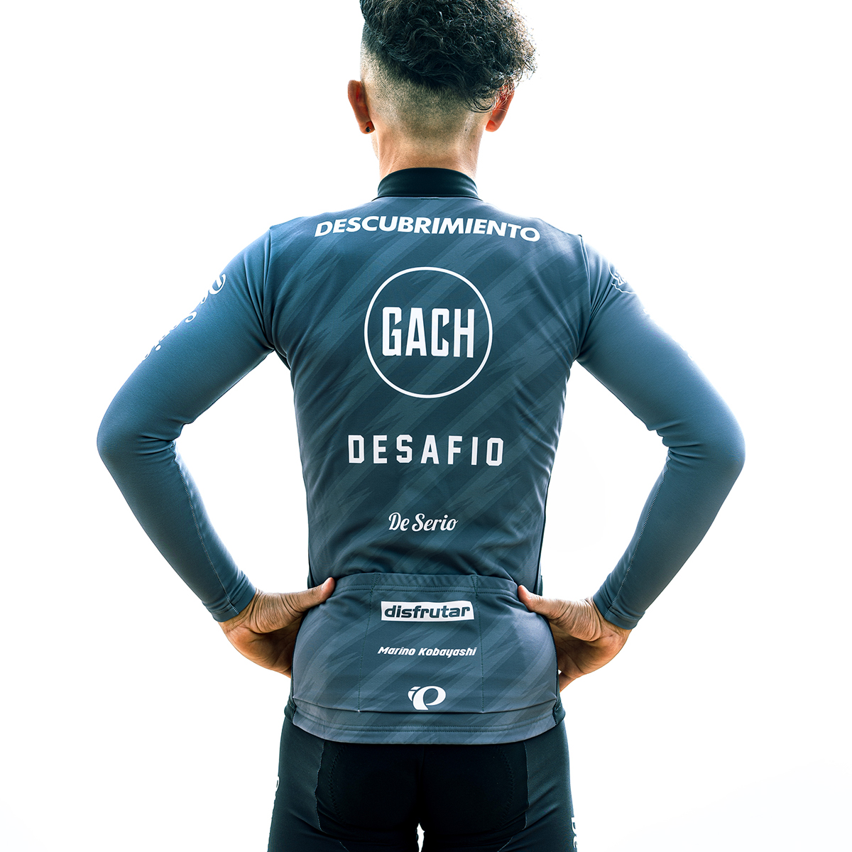 今回の秋冬コレクションでは、小林選手のルーツに由来する「真剣」や「チャレンジ」といったスペイン語のメッセージをスポンサーロゴ風にアレンジし、プロチームのウェアのような視覚的インパクトのあるデザインを実現した。特に秋冬シーズンに向けて、脇や袖にはブラックのアクセントを取り入れ、ベースカラーには視認性の高いイエローを採用。これにより、走行中の安全性を高めつつ、洗練されたデザインを提供している。また、タイツの膝下にもロゴが配置され、GACHシリーズならではの力強いデザインが際立っている。