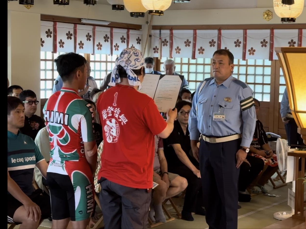 ライダー代表の安部勇一さん、そして氷見高校自転車競技部の表壮馬さんが力強い安全宣言を行い、大人顔負けの意識の高さを示した。