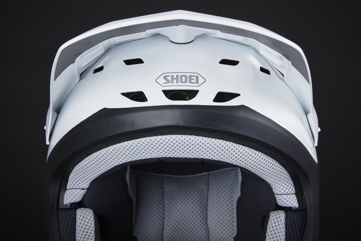 デザインは、SHOEIのモトクロス用ヘルメットのデザインスピリットを受け継いだ、アグレッシブさとシャープさを兼ね備えたフォルムが特徴だ。シェルと一体化したバイザーやノーズカバーが特徴的で、ライダーに強い印象を与える。さらに、後頭部のリブはゴーグルのズレを防ぎ、最適な装着位置を見つけやすい形状となっている。