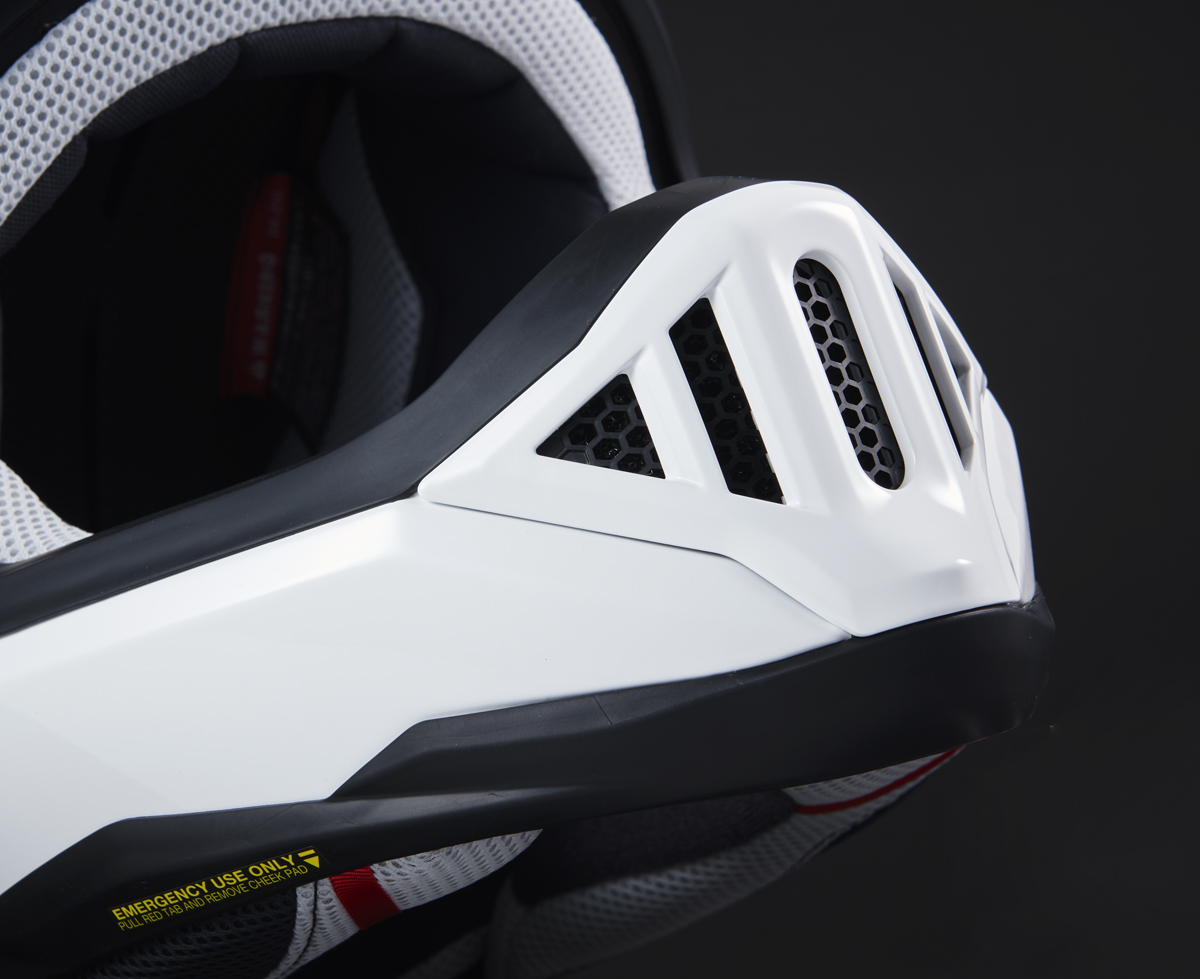 外側にメッシュスクリーンを装備したノーズカバーは、小石や異物の侵入を防ぐと同時に、レース中の呼吸のしやすさを向上。また、内部には塵や埃の侵入を防ぐメッシュフィルターを搭載し、簡単に取り外してメンテナンスが可能だ。