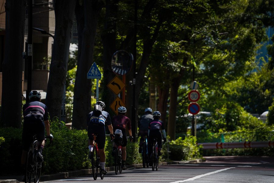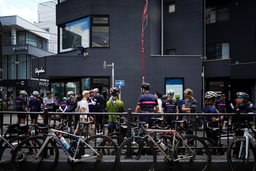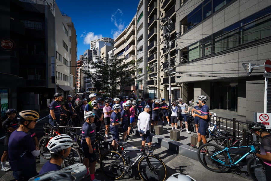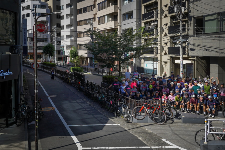 イベントには80名を超えるRCCメンバーとRaphaスタッフが参加。10グループに分かれて週末の朝の東京を走った。
