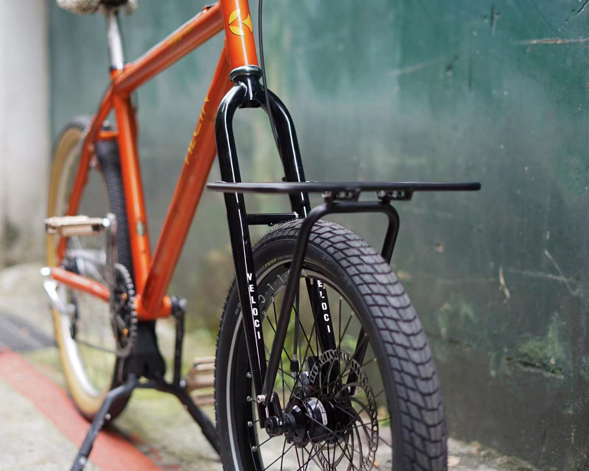VELOCIから日常使いから自転車旅行まで、あなたの相棒を万能ピックアップトラックに変身させる、新型フォーク「No.08 PICK-UP CR-MO スチール フォーク」が登場。 20インチの前輪を採用することで重心を下げ、走行時の安定性を向上。荷物の積載も楽々こなせる、まさに新発想のフォークだ。