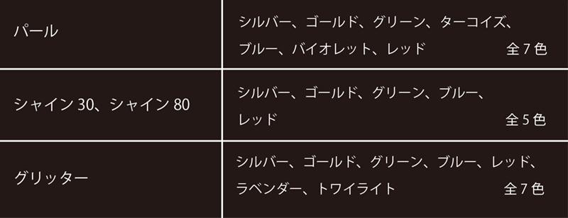 RAL規格カラーを選択した場合、エフェクトを追加することで、さらにオリジナリティあふれるカラーリングが可能。ラメやパール、メタリックなど、様々なエフェクトで、自分だけのTyrellを作り上げよう。艶の有無(グロス/マット)も選択できるため、質感にもこだわることができる。