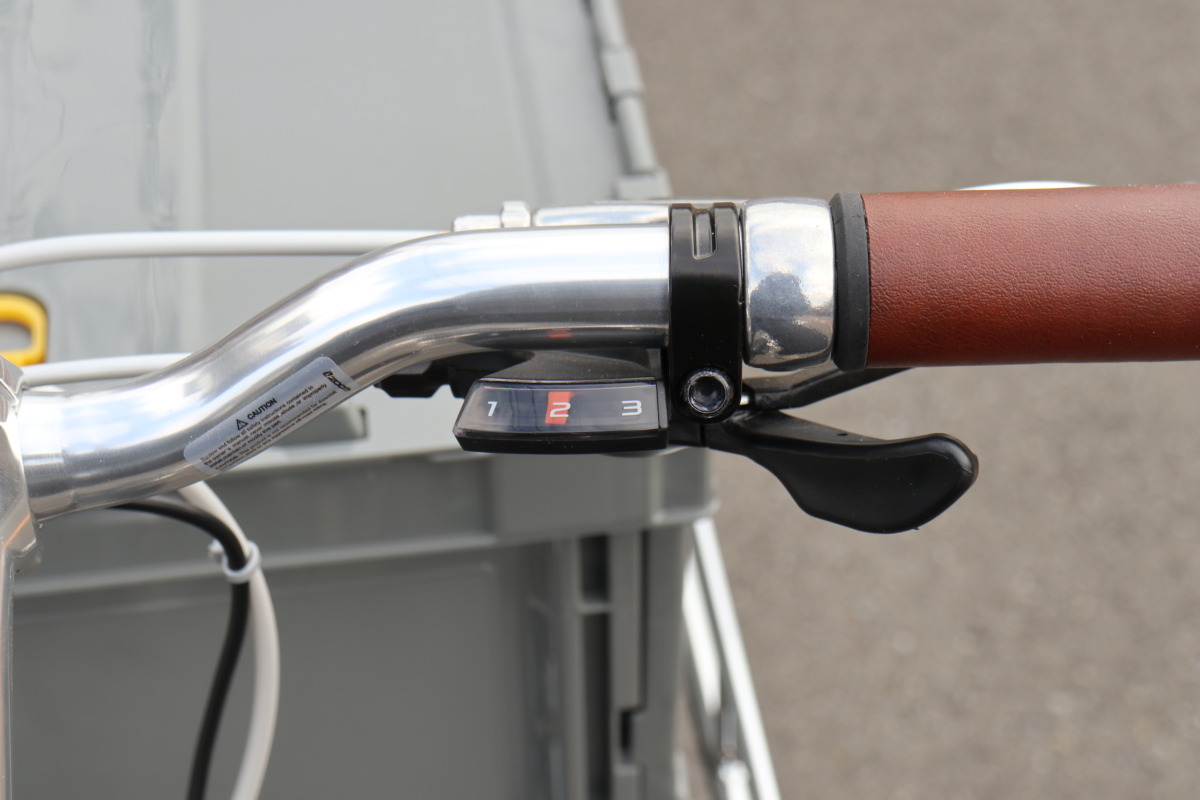 内装3段の変速も使える。使ってみた感想では、平坦な道では2速のままで大丈夫。急な上り坂では、1速。下り坂は、3速と使い分けは明確だ。