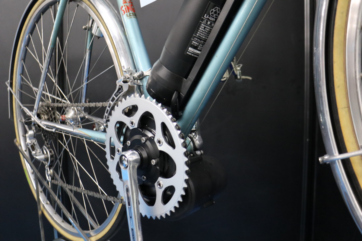 最初に目を奪われたのは、クラシックな佇まいをそのまま残した電動ランドナーだ。自転車工房ベルクレッタによる、電動ランドナー。eランドナーとしては、スマチャリ登場以前から独自で認証を得たドライブユニットを搭載したモデルを発売していたが、こちらはスマチャリを搭載して「ベル・プリモⅡ型」として新登場。ランドナーが本来持つ「旅のための合理性」と、電動アシストの思想が自然に重なり合っている。