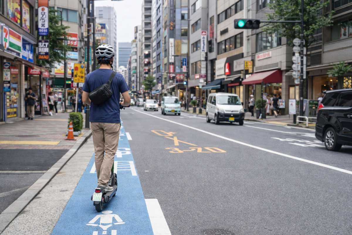 一方で、特定小型原付は道路交通法上は原動機付自転車の一種であり、車両としての通行が前提となる。原則として車両用信号に従う必要があり、歩行者用信号に合わせて横断することは想定されていない。また、自転車のように状況に応じて歩道に逃げる、横断歩道を使って向きを変えるといった柔軟な動きも基本的には取らない。あくまで車道上で、車両としての通行方法に従って進行する。