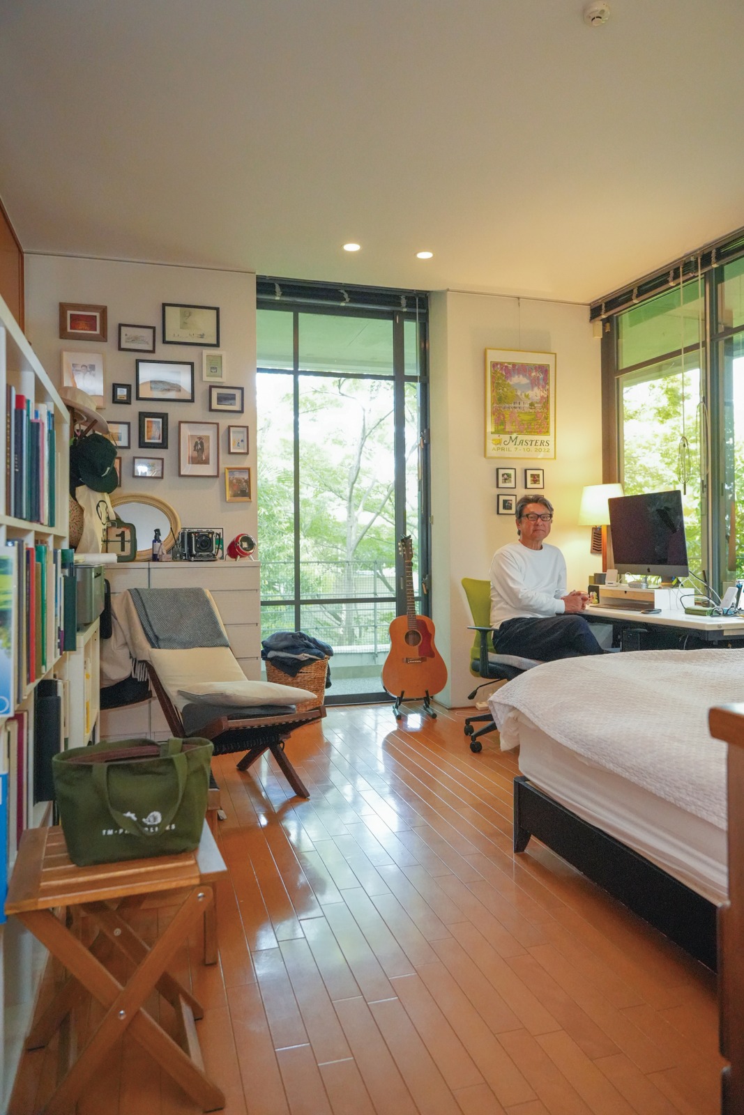壁や本棚にはマスターズをはじめ、長年撮影してきた名選手やコースの写真集が飾られ、記憶が自然と滲む空間になっている。