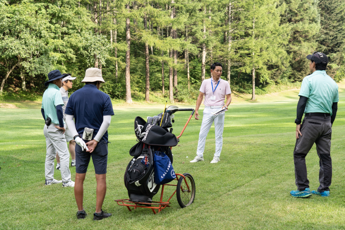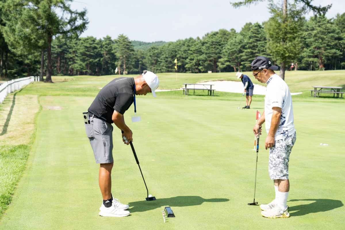 キャンプのプログラム初日は午後からスタート。参加者は2人1組に分かれ、時間制で各セクションを順に回って受講していくスタイルだ。グリーン戦略、ショートゲーム、コースマネジメント、そしてギアフィッティング。それぞれの分野を代表するプロフェッショナルからゴルフ場で直接指導を受けられるのは、この『EVEN GOLF CAMP』ならではだろう。