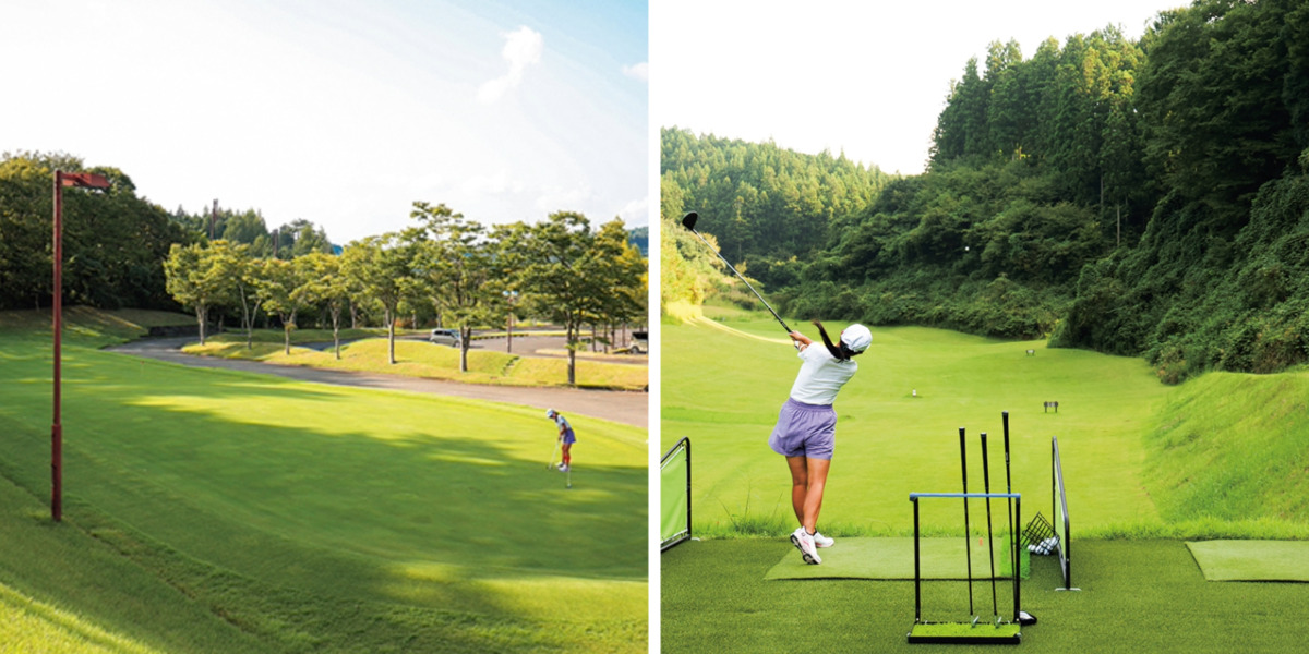 チェックインを済ませたら練習場へ。広い練習グリーンとアプローチ&バンカー練習場があるので、時間を忘れて没頭できます。同行したEVEN編集長のバンカーショットを特訓したのはここだけの話(笑)。