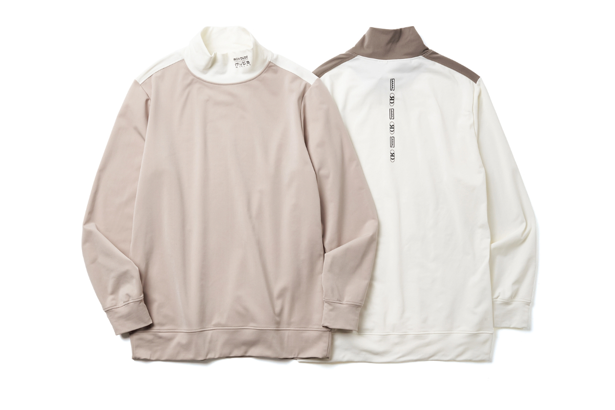 襟にコラボロゴ、背中に両ブランドのモチーフを配した裏起毛素材使用のハイネックインナー。各33,000円。