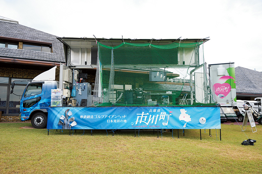 聞けば、兵庫県市川町が運用する町のPR用トラックだという。市川町といえば、国産ゴルフクラブ発祥の地であり、現在も多くのメーカーが本拠を構えるアイアンの一大産地でもある。これをプロモーションするため、各メーカーの試打クラブを携え全国を旅するというトラックなのである。面白すぎる。